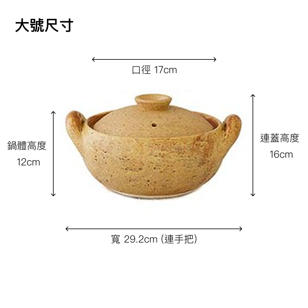 - 大:連雙耳總長 292mm、口徑 170mm、高 (連蓋) 160mm